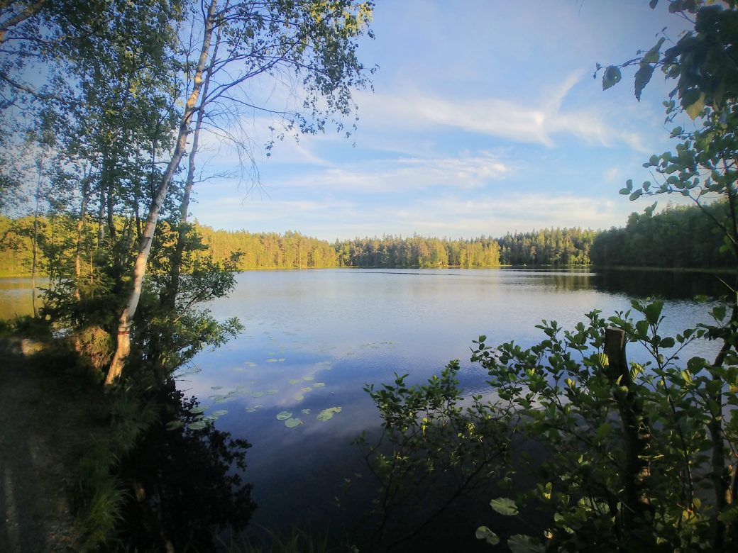 En nous approchant du lac, nous rencontrons des ouvriers Français et leur chef Finlandais. Très sympathiques, ils nous expliquent les différentes espèces d’animaux que l’on peut observer ici, qu’il y a un barbecue à disposition, que l’on peut se servir dans leur bois…