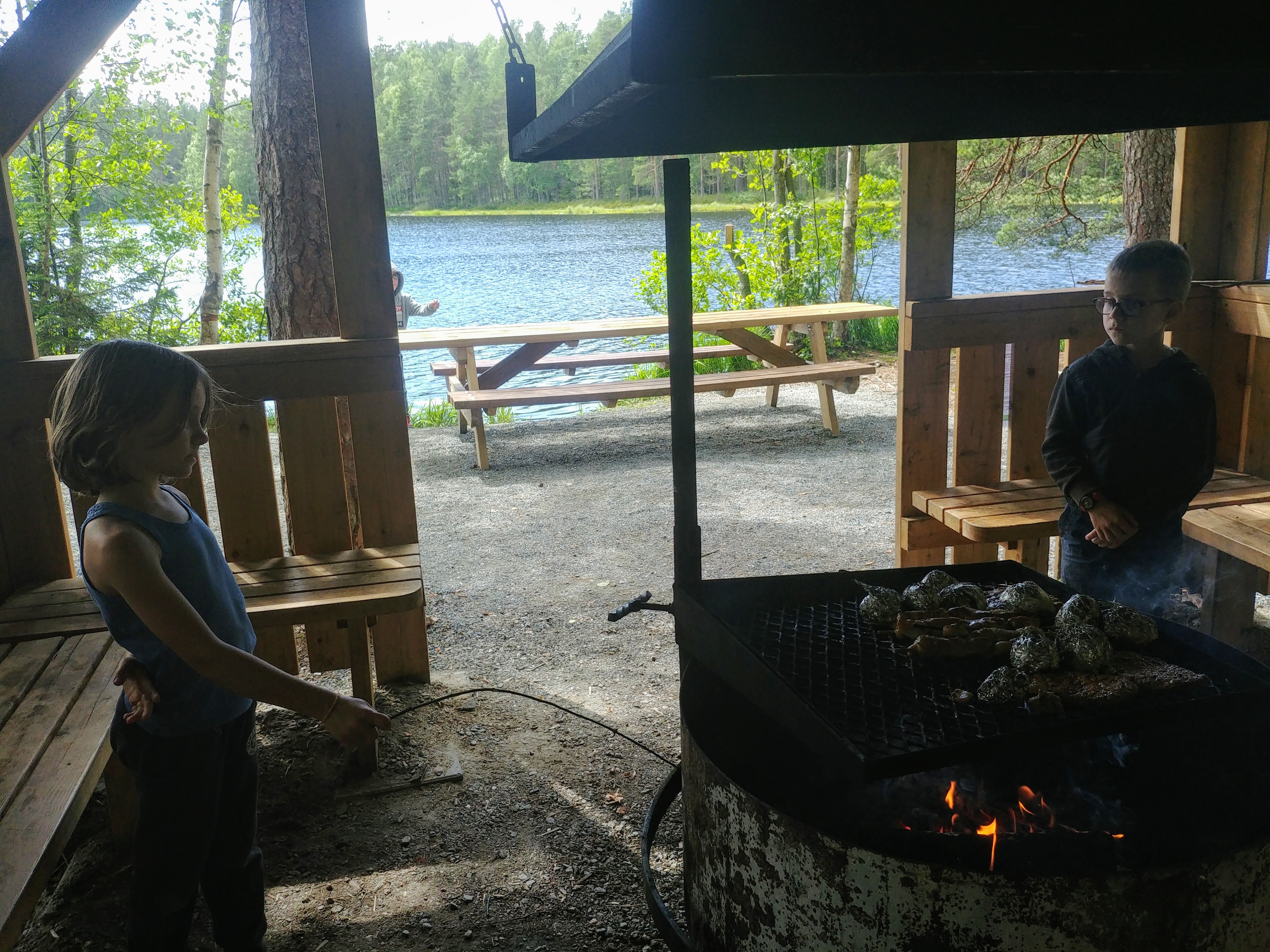 Une fois tout préparé nous partons pour le lac et faire nos grillades. Des pommes de terres cuites dans de l’aluminium les accompagneront.