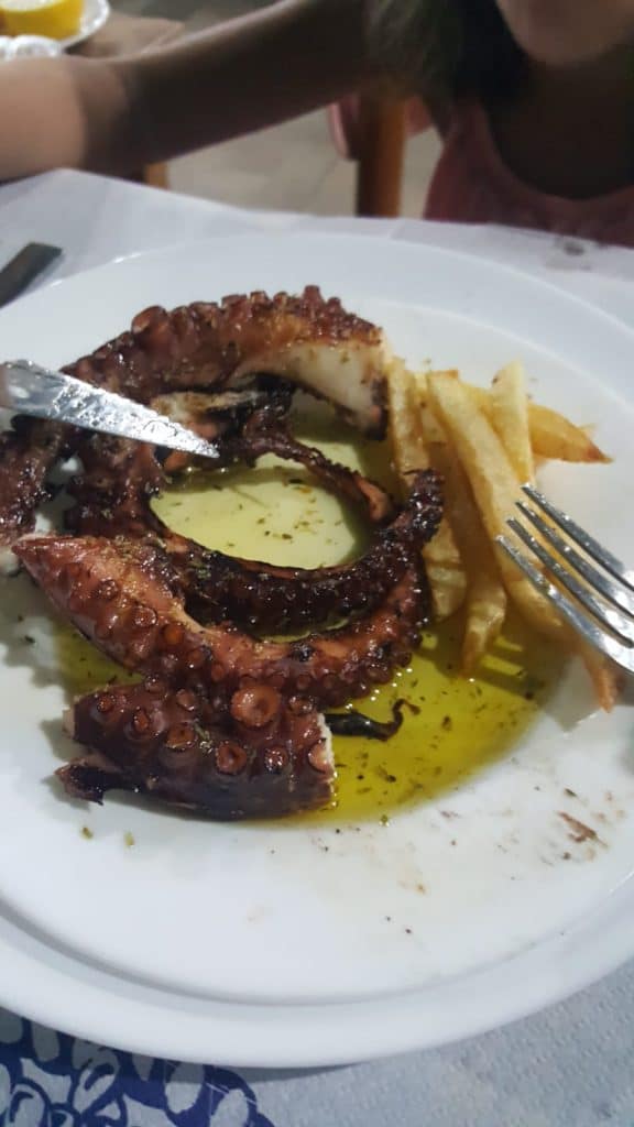 Pour ce soir, nous suivrons ses conseils et irons visiter le restaurant où nous pourrons déguster des sardines grillées, de la dorade et du poulpe accompagnés de frites maison et d’une salade grecque. C’était effectivement une bonne adresse !