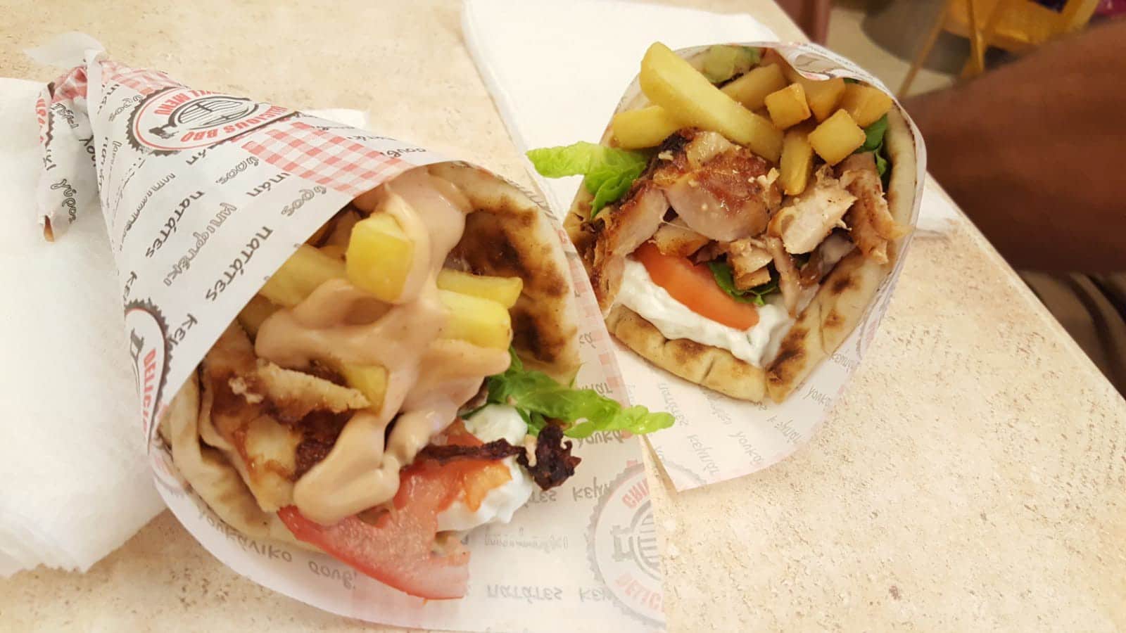 Passant devant un marchant de kebab, nous en profitons pour y manger un vrai gyros Grèc. Nous y retrouvons les mêmes ingrédients qu’en France à la différence que ici, le Tzatziki est obligatoire.