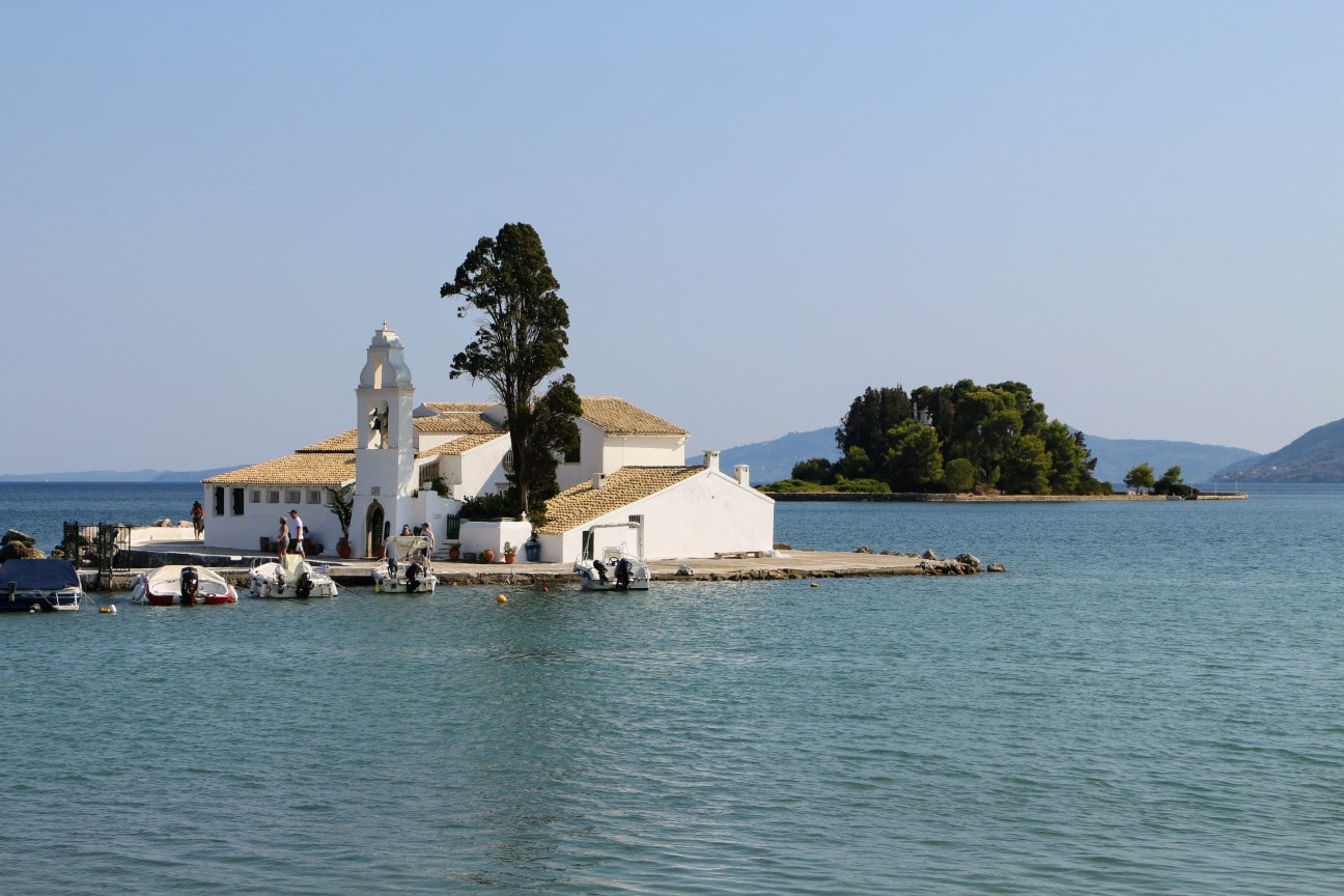 Selon la légende, la petite île derrière la presqu’île de Kanoni, serait l’île ou Ulysse aurait amarré son navire à son retour ou, selon les traductions, le navire d’ulysse lui même qui aurait été changé en pierre par Zeus.