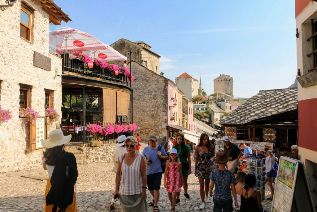 Arrivés à la vieille ville, nous sommes étonnés de voir tant de touristes. Nous sommes pourtant hors saison et en Bosnie. Nous ne nous attendions pas à trouver un endroit si fréquenté.