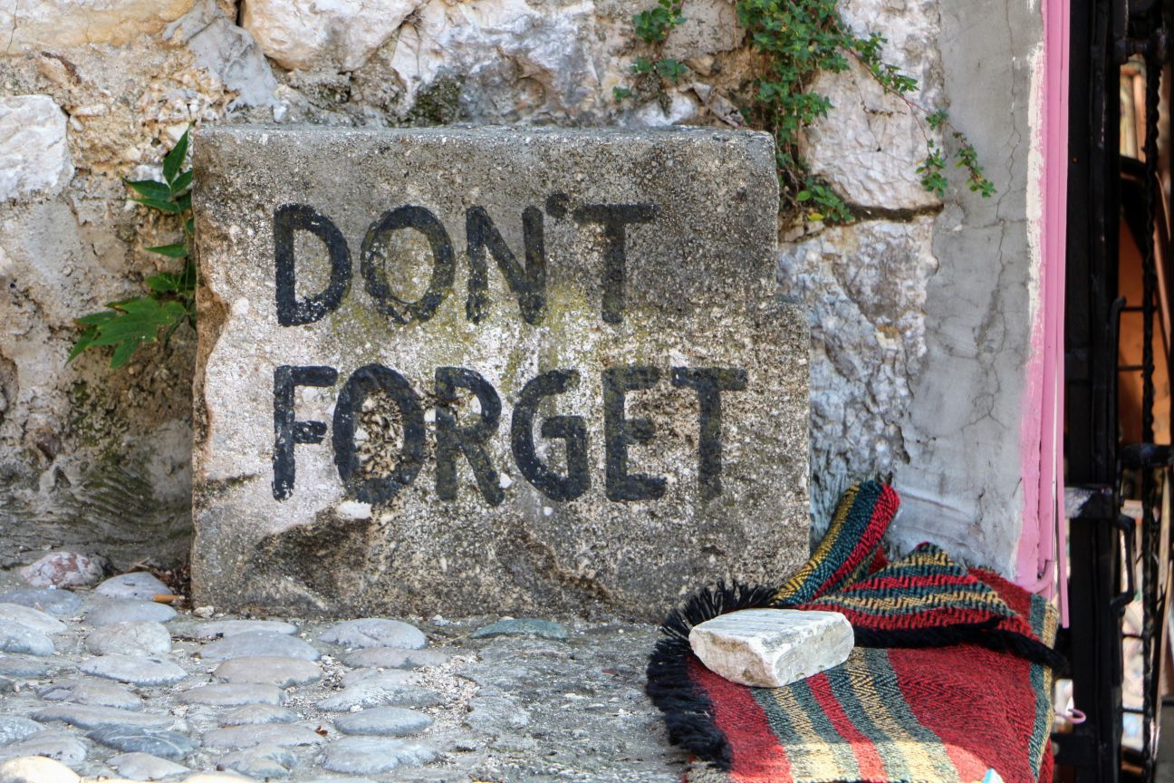 Les stigmates de la guerre de Bosnie sont encore très visibles. De nombreux panneaux « don’t forget » apparaissent ici et là, certains magasins vendent des articles de militaria ou des sculptures réalisées en obus ou en douilles…